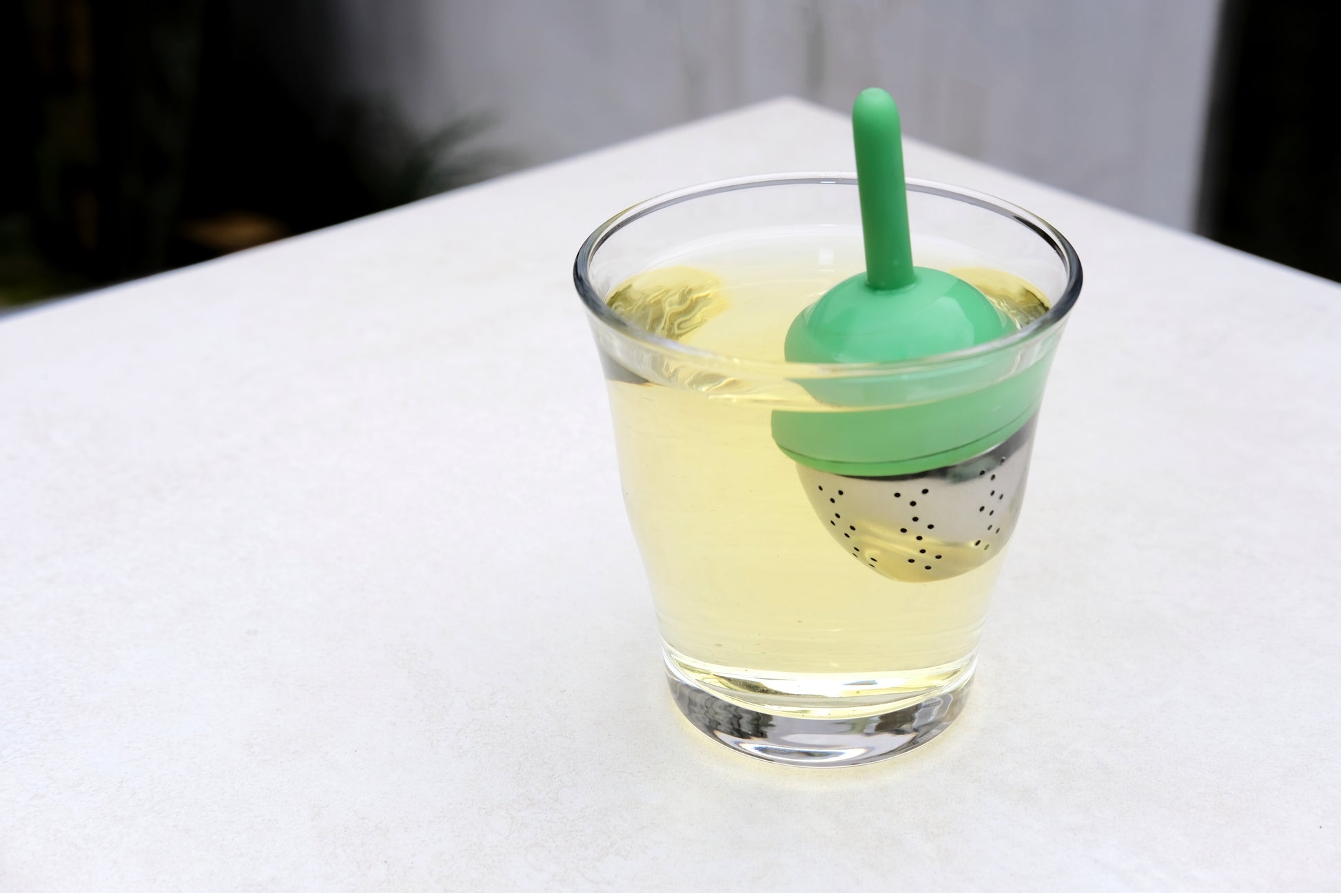 Floating tea infuser that makes hot-water measurement sensory and calm